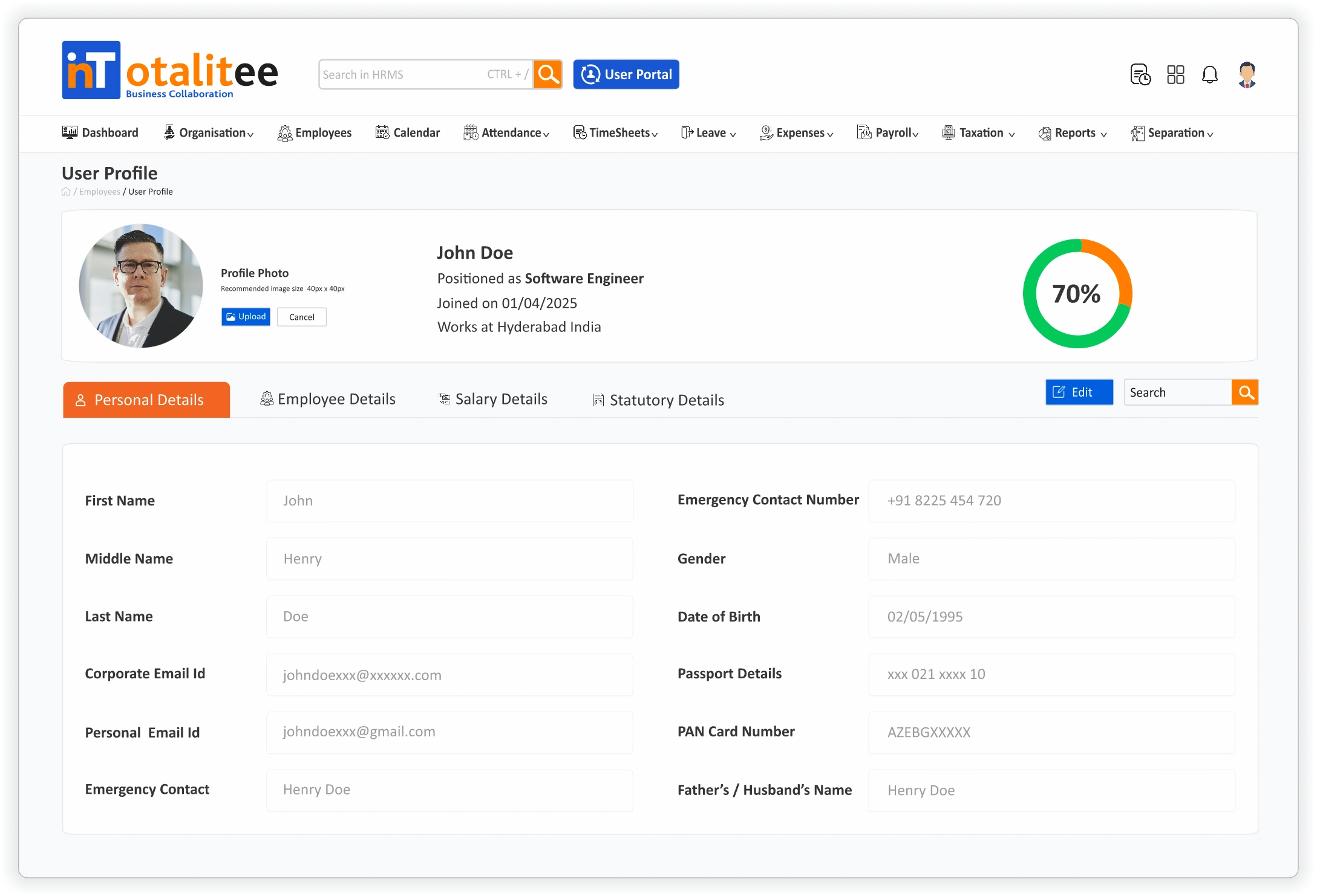 Employee profiles is the heart of the employee database and is an essential part of our HRMS.